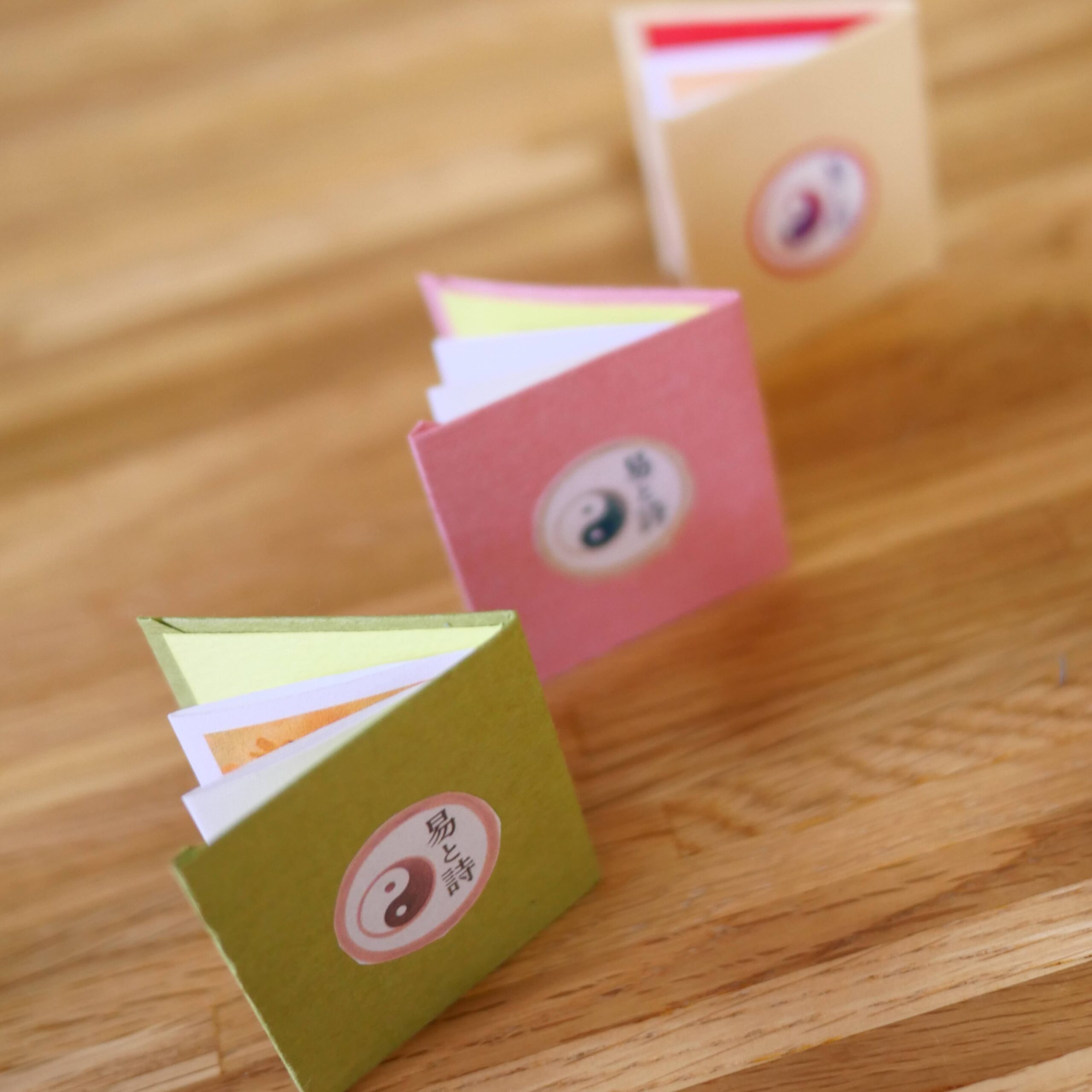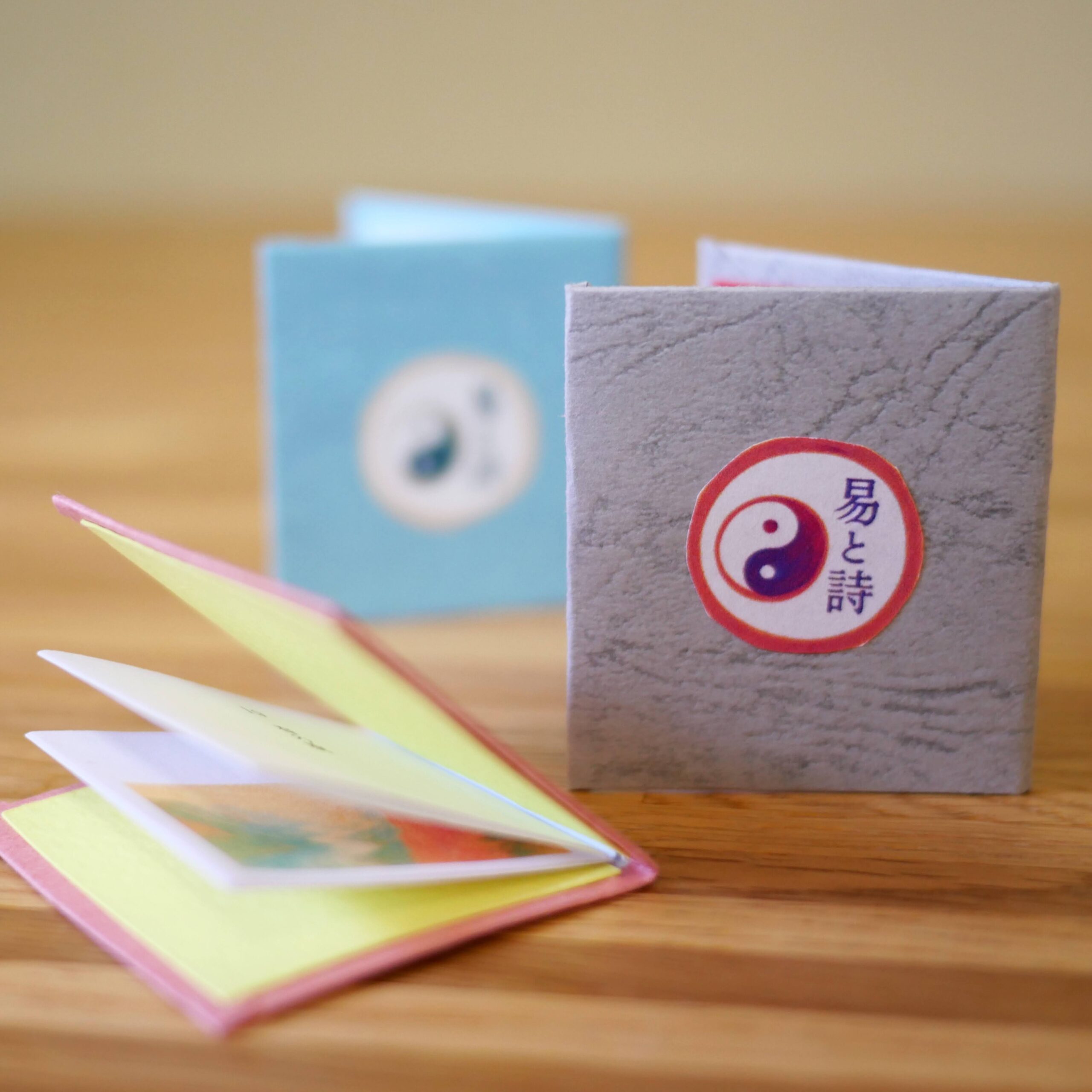 易経からインスピレーションを受けた小さな詩を、4cm角ほどのミニブックにしました。