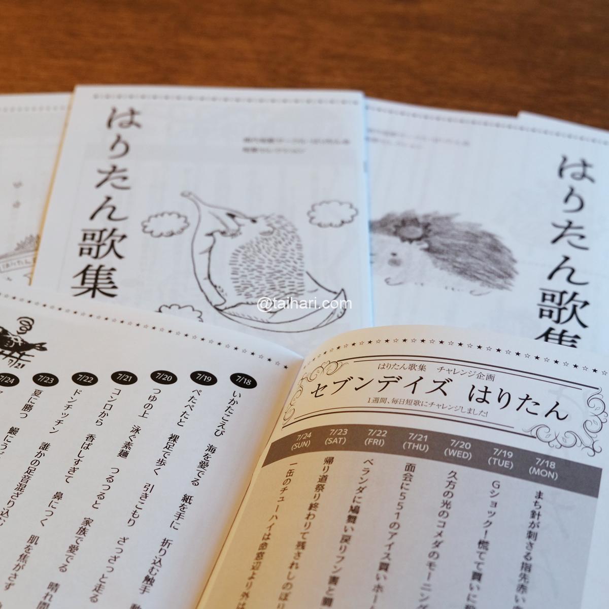 主な内容:セブンデイズはりたん(1週間短歌日記)、テーマ別の短歌、メンバーによるコラム等